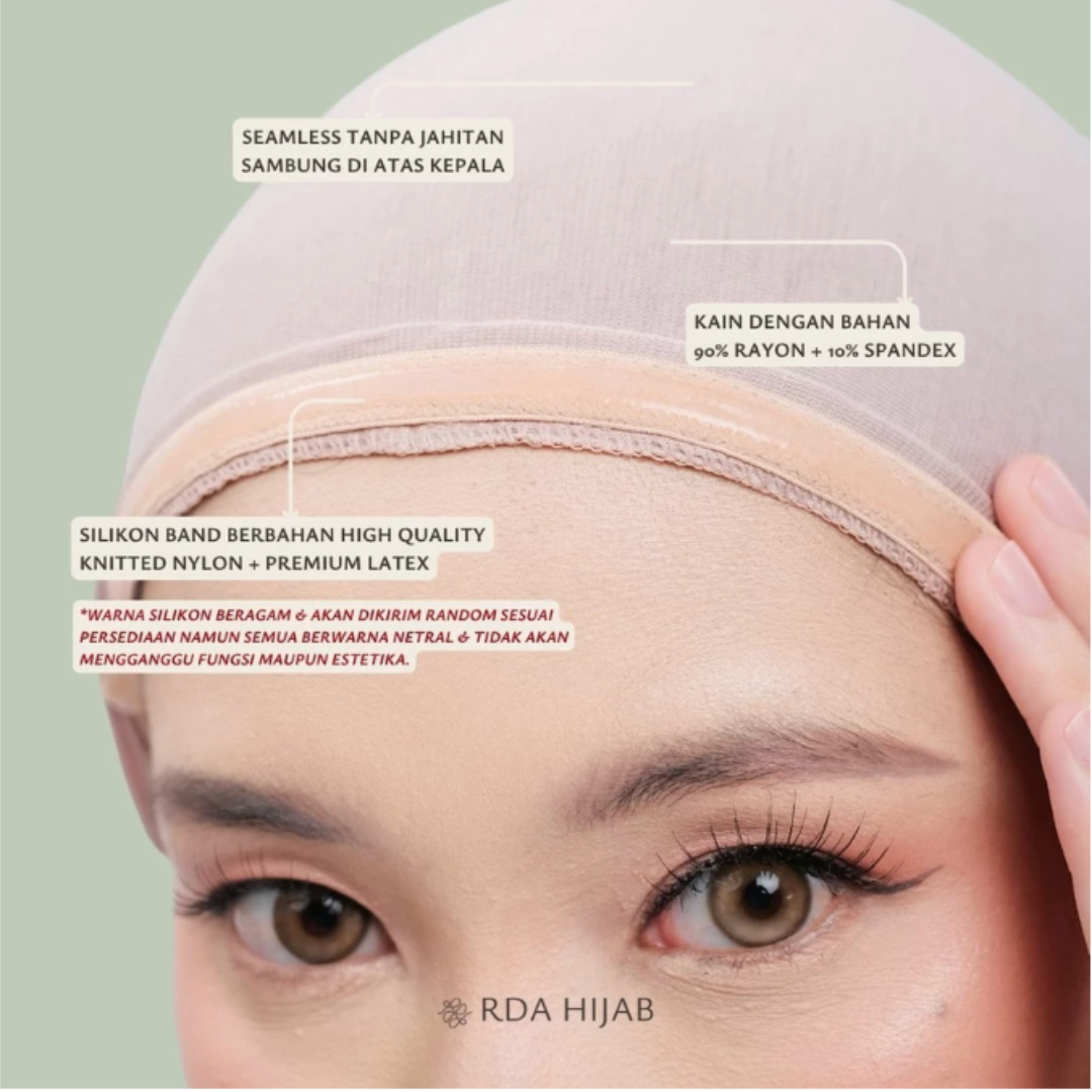 Dilengkapi silikon anti slip di dalam bagian dahi agar ciput diam di tempat meski padat beraktivitas.